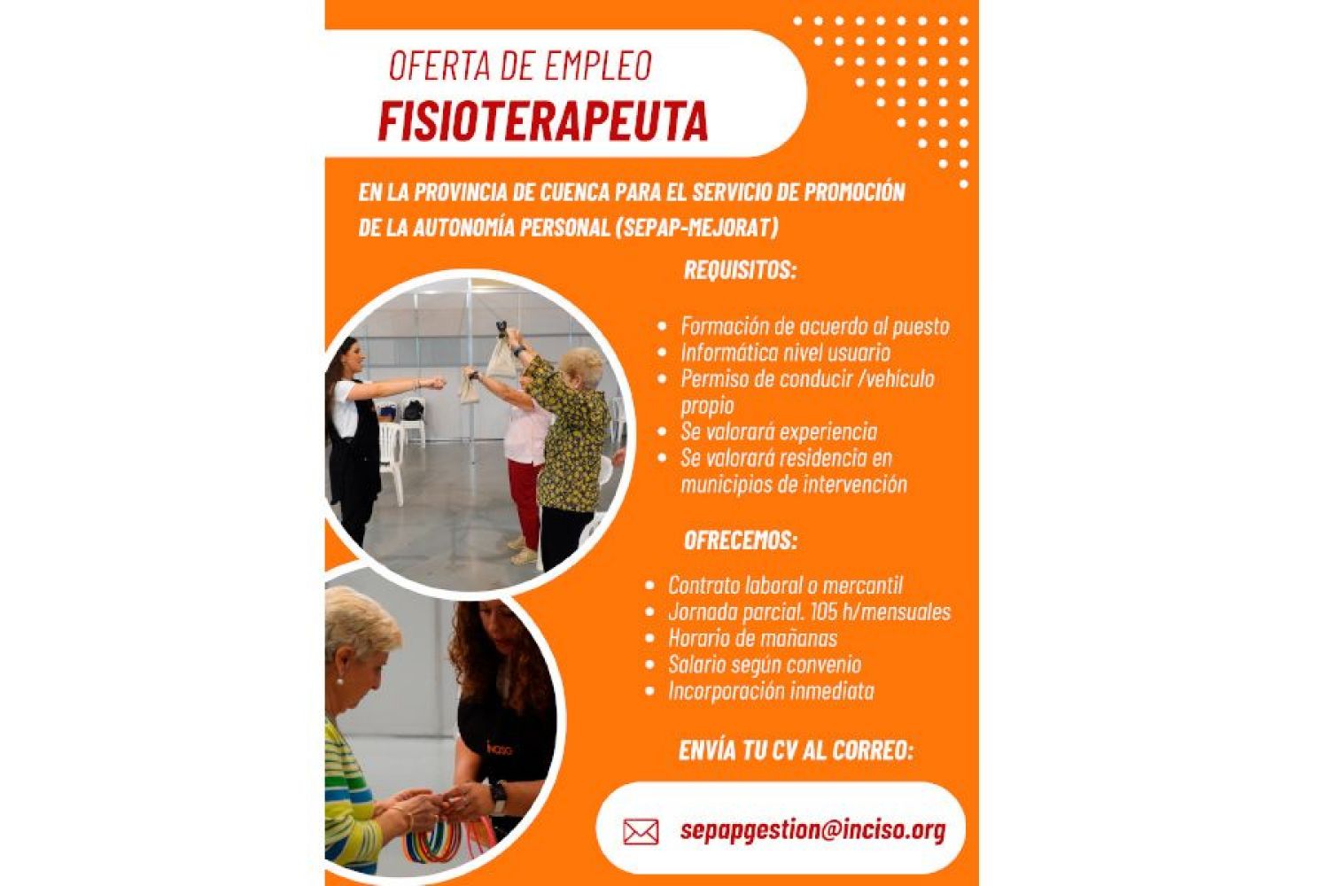 La Asociación para la Iniciativa Social y la Integración (INCISO) precisa cubrir puesto de Fisioterapeuta para Servicio de Promoción de la autonomía personal (SEPAP-MejoraT) itinerante en la provincia de Cuenca